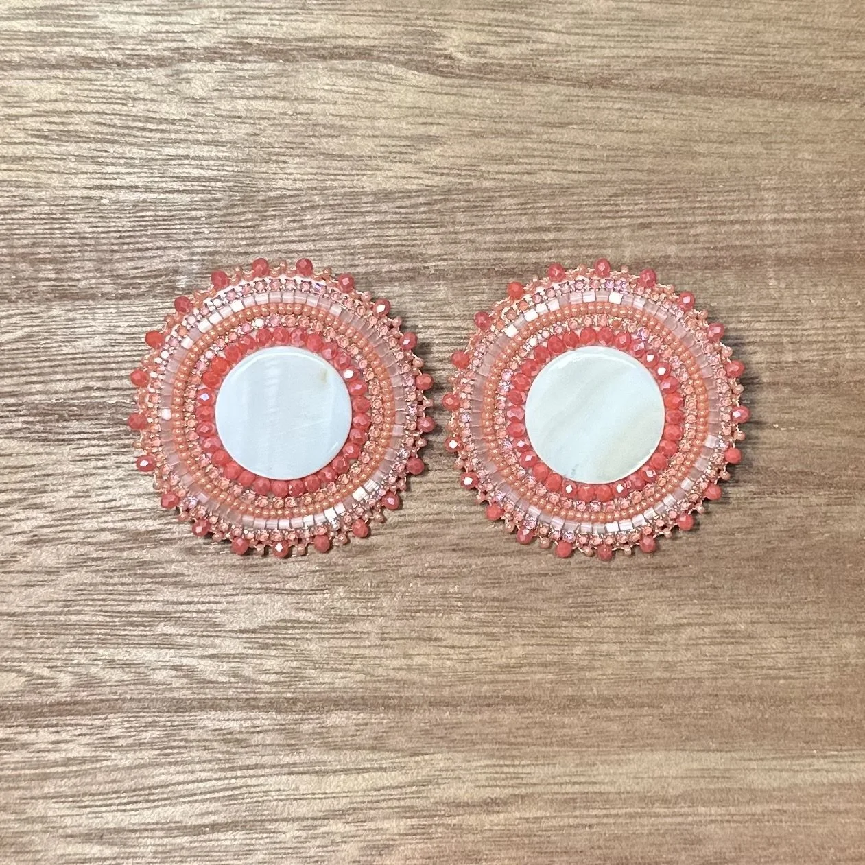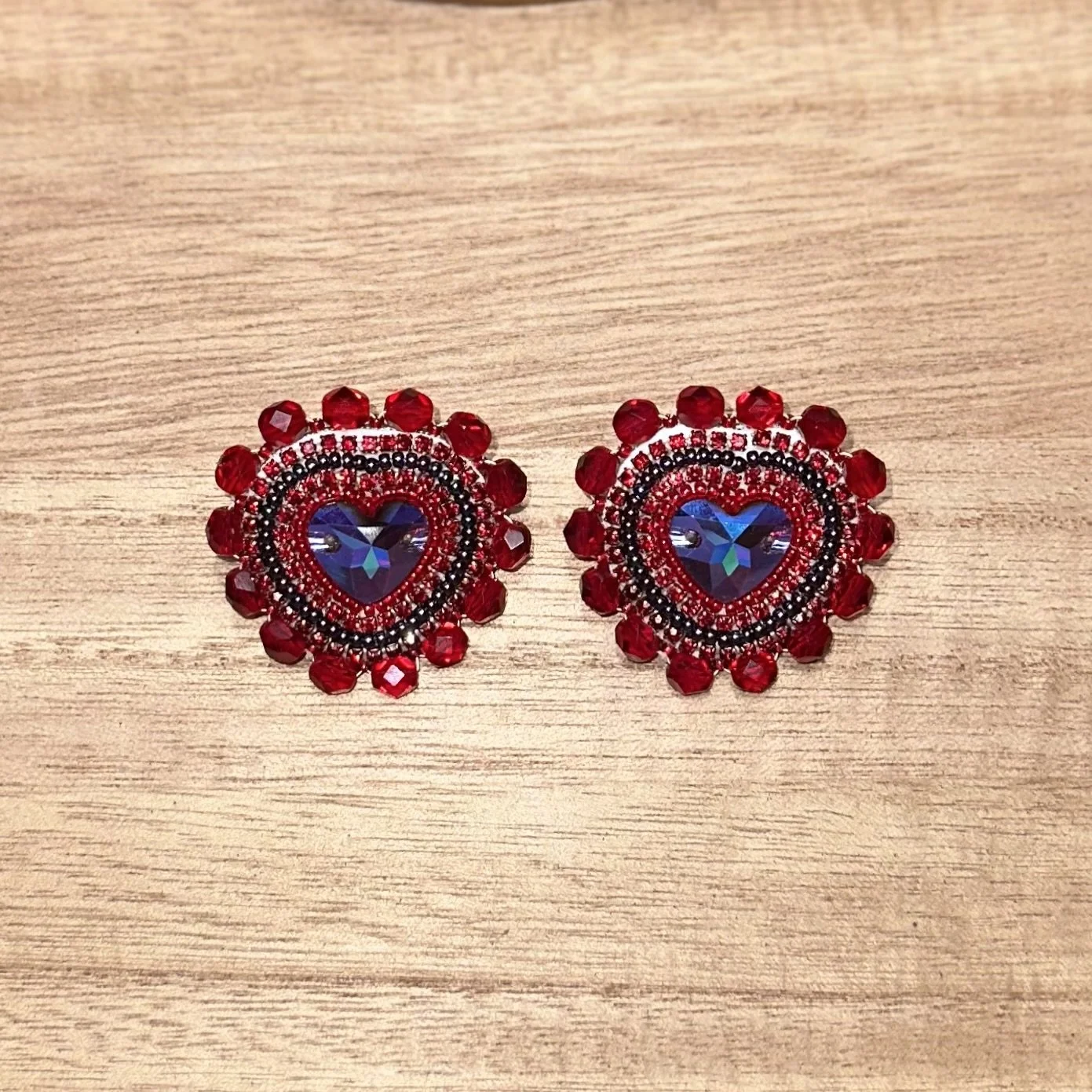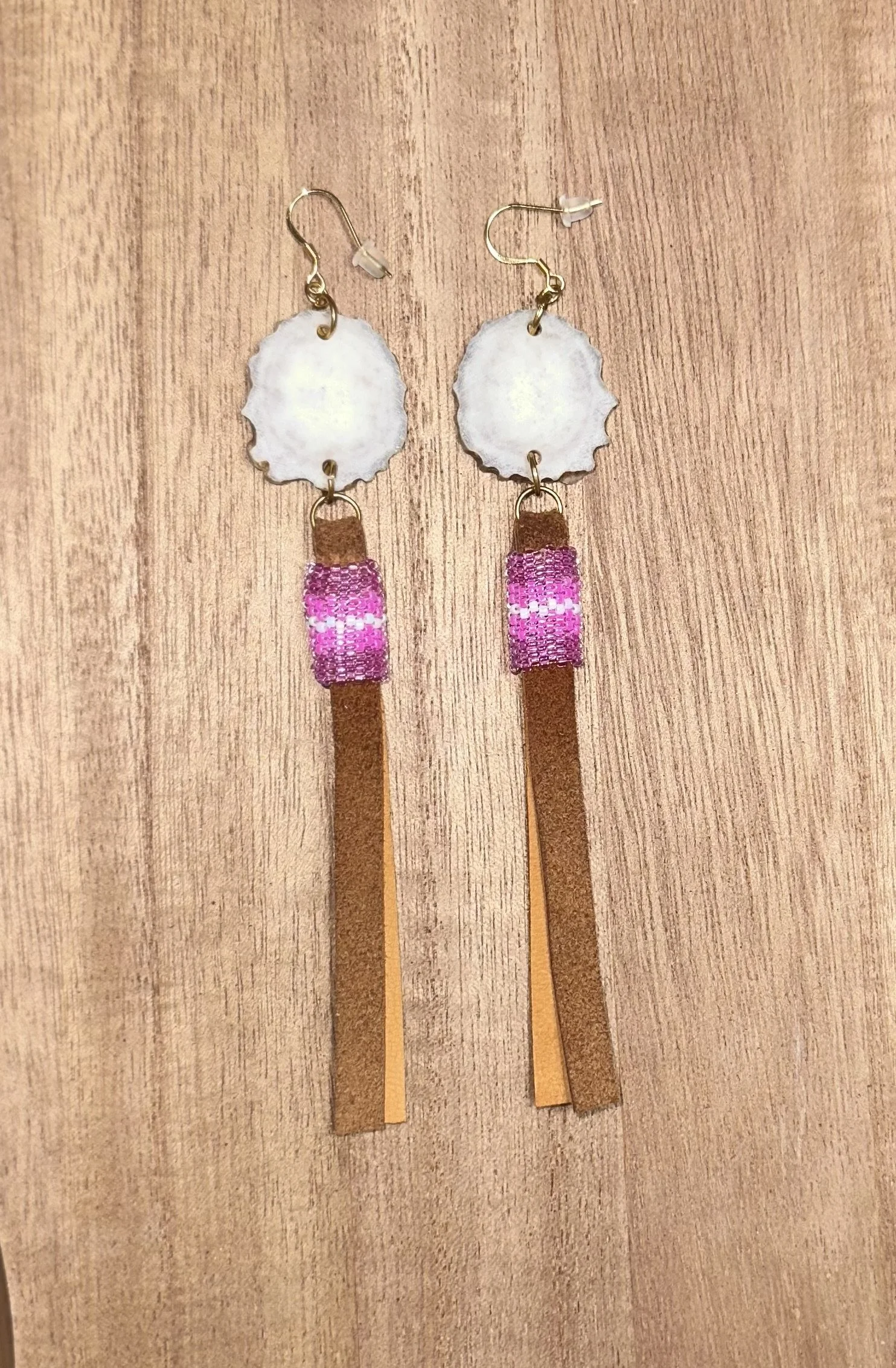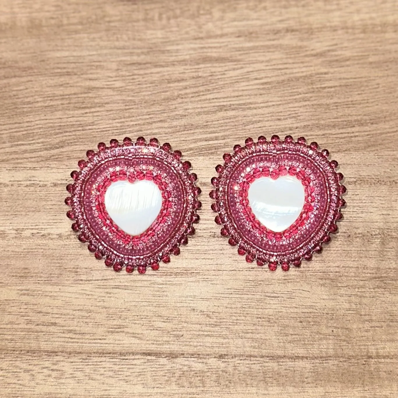 Pink Bear Paw Hearts. $70.00 White Turtle Hearts. $70.00 Emerald Heart Mirrors. $45.00 Orange Mother Of Pearl Studs. $45.00 Purple Tulip Feathers. $45.00 Gold dangles. $25.00 Black GhostFace Studs. $20.00 Brown Antler Dangles. $35.00 Blood Red Heart Studs. $30.00 Sold out Mint Crystals Studs. $40.00 Pink Studded Hearts. $50.00 Hot Pink Deer Antler Dangles. $55.00 Ruby Mother Of Pearl Hearts. $45.00 Fuchsia Mother Of Pearl Hearts. $45.00 Teal Flower Hearts. $55.00 White Green Beaded Hoops. $20.00 Cranberry Cream Beaded Hoops. $20.00 Pink Purple Mixed Hoops. $20.00 Black Beaded Hoops. $20.00 Dark Purple Beaded Hoops. $20.00